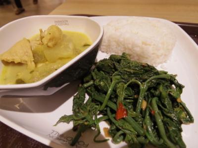 お昼頃BTSに乗ってサイアムへ。朝たくさん遊んで疲れたのか寝ちゃったので、一人ゆっくりサイアムパラゴンのフードコートでおひるごはん。グリーンカレーと野菜いため、ご飯で80バーツ。味はまあ普通においしかった。ただ量が少ないなあ。そして平日の昼だというのにものすごい混雑。会社員というよりも、観光客が多かった。