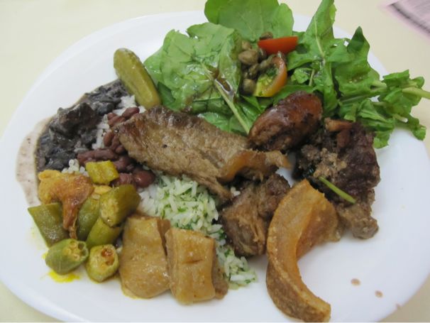お昼ごはんはQuinto do Ouroというミナス料理のポルキロレストランに行った。ミナス料理が一気に試せるのでここオススメ。ポルキロ(量り売り)レストランは一人旅にピッタリ。目で見て、いろんな種類を選べるし、自分で量を調節できるし、一人でも入りやすいし、安い。難点は昼しかあいていないことか。