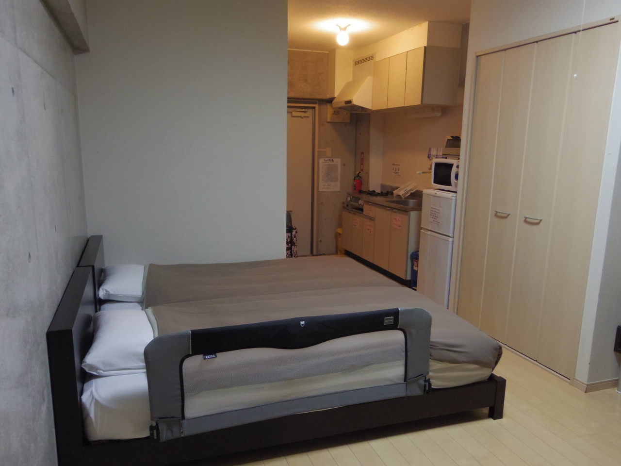 子連れにやさしく激安なホテルを石垣島に発見。赤ちゃん連れプランがあり、空港無料送迎つき。普通タクシーだと2000円以上する距離なのでこれは素晴らしいサービス。市街地からは3kmほど離れているのだけど、目の前に大きなスーパー等商業施設があり便利。街へ行くバス停も目の前。長期滞在型のホテルなので、キッチン完備。洗濯機もある。今回赤ちゃん連れ応援プランなるものできたので、ベッドガード、おもちゃ、オムツ10枚が用意されていた。こんなに至れり尽くせりなのに、素泊まり一人4200円と安い。