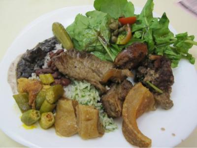この店は品揃えがいいし、立地がいいのでかなり高め。450gくらいとってR16もした。約800円。日本と変わらない感じ。鳥肉とオクラの煮込み料理や豆の煮込み料理がとても美味しかった。皮付き豚肉を揚げたものはノルウェーのクリスマス料理リッベを髣髴。- 旅行時期