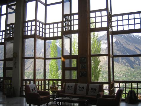 カリマバード一番の高級ホテル、ダルバール。立地も便利で高台にあり、ロビーからも部屋からも眺めがすばらしい。私が泊まったときはパキスタン情勢が悪いので観光客もとても少なく閑古鳥、かなり大きな割引をしてもらえた。さすが町一番とあってとても立派な建物&雰囲気のいいロビー。部屋はパキスタンスタンダードなので、豪華というわけにはいかないけど、ツインルームで、ほかはどこも停電でキャンドルなのにここは自家発電で電気もあるし、衛星テレビもあるし、とても快適。お湯もたっぷり出るし、バスタブもある。