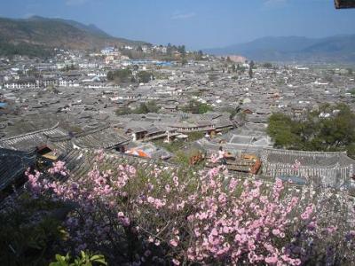 万古楼からは麗江の町が見渡せとてもきれい。でも正直万古楼内部はそんなに面白くないので、お金を節約したい人はその入り口近辺にあるカフェ等に上らせてもらうのがお勧め。私が行ったところは2元だった。万古楼よりもかなり安い。眺めはそこからでも十分きれい。ちなみに朝よりは午後のほうが太陽の位置の関係からきれいな写真がとれた。