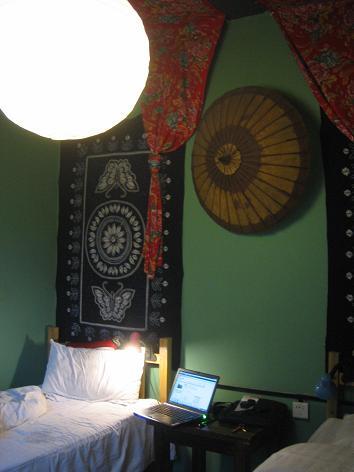 ここの別館に、ドミトリーがあり、普通のホテルの部屋を3人で共同で使うところがある。35元と50元の部屋を見せてもらい、どちらもそんなにかわらなかったのだけど、50元の方はホットシャワーが24時間使えるらしいので、そちらにした。バスルームはとってもきれいでタオルもあり、ベッドもふかふか!これはかなりお得。- 旅行時期