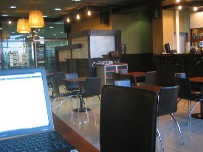 ツム百貨店横にあるRed Centreという赤いビルのショッピングセンター内3階にある超おしゃれなカフェにはWiFiがあり、スピードも申し分なし。値段は高めだけどとっても快適だし、24時間営業。チャイが一杯40ソム、大きなポット入りチャイは90ソム。これで居座りOK。食事はサンドウィッチやピザなどの洋食中心で、キルギス料理はない。ピザは値段の割りにおいしくなかった。