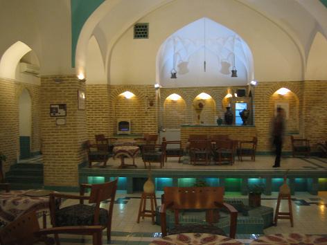 ヤズド旧市街のバザールにある、地球の歩き方にものっているチャイハーネ・ハンマーム・ハーンという元ハンマームのチャイハーネへいってみた。入り口はものすごくわからないけど、有名らしく、周りの人に聞きまくりながらたどり着いた。