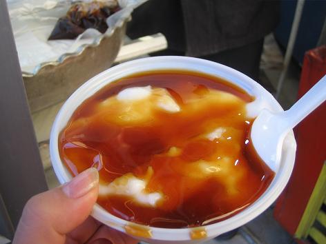 エスファハーン名物のデザートだというfereni。牛乳をフルーチェ状に固めたものにナツメヤシの甘いシロップをかけたもの。たっぷり入って4000リヤル(約40円)。このふるふる状の牛乳ゼリーと、ナツメヤシの甘みがたまらない。すっかり気に入ってしまった。香港人はこれを豆腐花と表現していたけど、確かに似ているかもしれない。