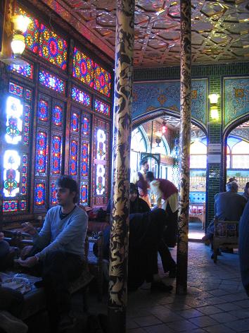 中は写真のような感じでとっても雰囲気がいい。 さぞかし高いんだろうと思うとドリンクは大体50円くらいと良心的。私はイラン名物(?)サフランのアイスクリームともう一種類フレーバー不明のアイスクリームをいただいた。約100円。