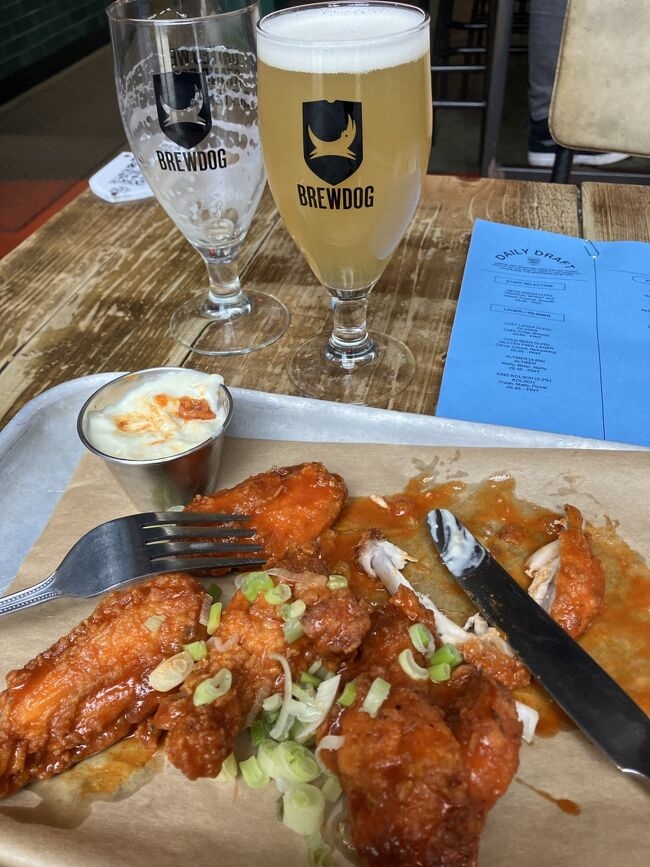 2杯目Hazy Janeとチキンウイング。チキンウィングは売りらしく、確かにおいしかった。スモールサイズで9ポンド。