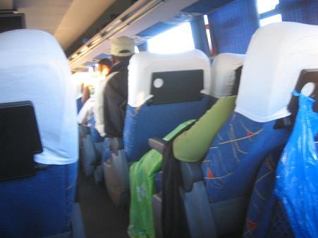 ヨハネスブルグ−ケープタウン間をIntercapeのバスで移動した。所要時間19時間。Sleeplinerというデラックスバスで、R420(約5600円)。ネットで予約&カード払い可能。フルフラットまではいかないものの、飛行機のビジネスクラス並みにリクライニングがきき、フットレストやふかふかの座席がゆったりと配置されていてかなり快適だった。ボリュームの調整がきかないビデオシステムで見たくもない映画を無理やり見せられた以外は快適にすごすことができて、9時間くらいは寝られた。