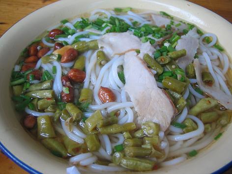 肉のスライスとピーナッツなんかが乗って出てきて、その他トッピングは自分ですっぱいインゲンやチリなどを加えていただく。シンプルだけどおいしいんだ。しかも4元(約60円)と安いのがうれしい。- 旅行時期