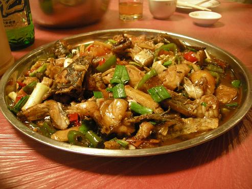 陽朔名物らしいビール魚。あちこちにBeer fishと書かれた看板が。そういう名前の魚がいるわけじゃなく、ビールで調理したってことらしい。魚は選べてそれによって値段が変わる。私たちが頼んだのは黄骨魚というもの。柔らかくて脂が乗ってておいしかった!ソースは辛めでご飯によくあう。500gごとの値段で、私たちの魚は1.1キロで110元(約1700円)。安くはないけどこれを5人でシェアしたのでまあまあ安く上がった。