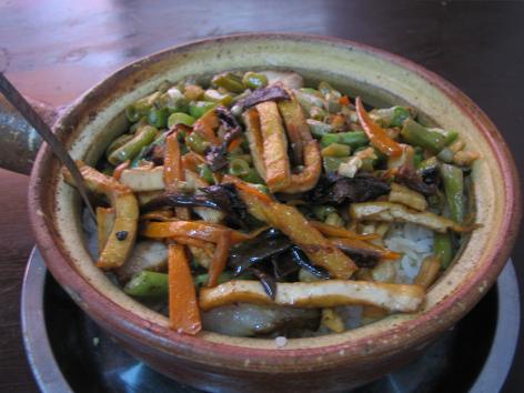 砂鍋で炊いたご飯は硬めでおいしい!これかなり日本人好みな味だと思う。安いしおなかにもたまってお勧め。- 旅行時期
