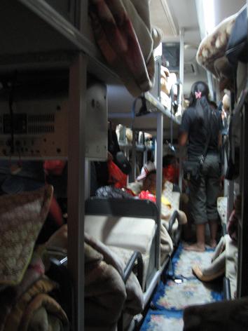 しかも2階建てで下の階はちゃんと座れないほど天井が低い。常に寝た状態。私は幸い2階席だった。でもかなりゆれるし幅狭いしで怖いんだなあ。それでも普通のバスよりはかなり快適で、結構熟睡した。- 旅行時期