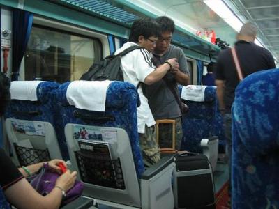 九龍側の紅磡(ホンハム)駅から広州東駅へ直通電車がある。所要時間は1時間20分。バスだったら3時間はゆうにかかるだろう。1時間に一本くらいの頻度で出ている。電車に乗る前に出境手続きを済ませる。チケットは1等で(2等はない)HKD190(約2600円)。やや高いけど快適。電車も日本の電車のようにきれい。無料で水も配られる。広州に到着後は駅で入国審査を受け中国入境。駅はかなりでかくて、ホテル予約所もたくさんあって、いきなり来ても困らない感じだった。
