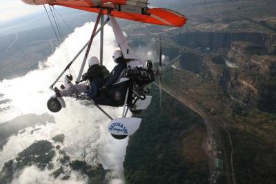 マイクロライトとは自転車みたいなものに翼とエンジンがついていて、タンデムで飛ぶ乗り物。ヘリコプターと違って密室じゃないし、自転車で飛んでるような感覚がすごく面白い。かなり安定感があるし、ひどい高所恐怖症の人じゃなければ大丈夫だと思う。途中滝だけじゃなくてザンベジ川のかばを見たり、バッファローを見たり、木の上にある鳥の巣を見たり、見所沢山。操縦師とはヘルメットについているマイクで交信できるのでいろいろ案内もしてもらえる(ただし英語必須か)。- 旅行時期