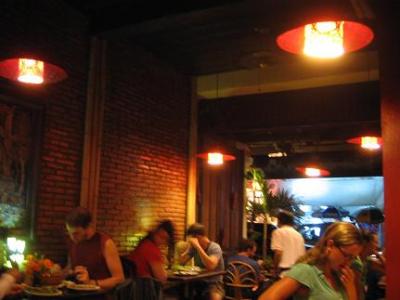ルアンパバーンのメインストリートには欧米人の好きそうなこじゃれたレストランがたくさんある。どこもメニューや値段は似たような感じで、西洋料理やラオス料理、タイ料理がメイン。その中のひとつ、サッカリンGHにほど近いTum Tum Bambooというレストランで夕食を食べた。写真からもわかるとおり、お客さんの99%が欧米人。