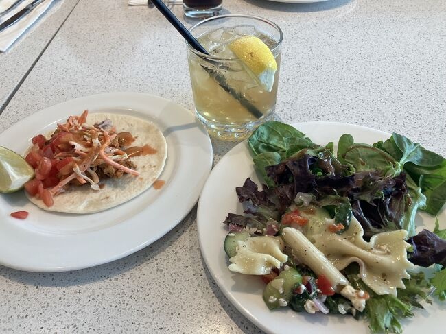 カレーは全然辛くなくて子供でも大丈夫だった。パスタは大豆ミートなのでちょっと違和感だけど、普通においしく。タコスが私は一番好きだった。カクテルはMLL Tom Collins