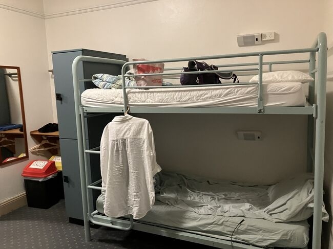 6ベッドの女性ドミでA$45(約4,000円)。シドニーよりはちょっと安いのかな。寝返りを打つとベッドが揺れる鉄パイプのやつでカーテンもないけれど、マットレスや布団は快適だった。