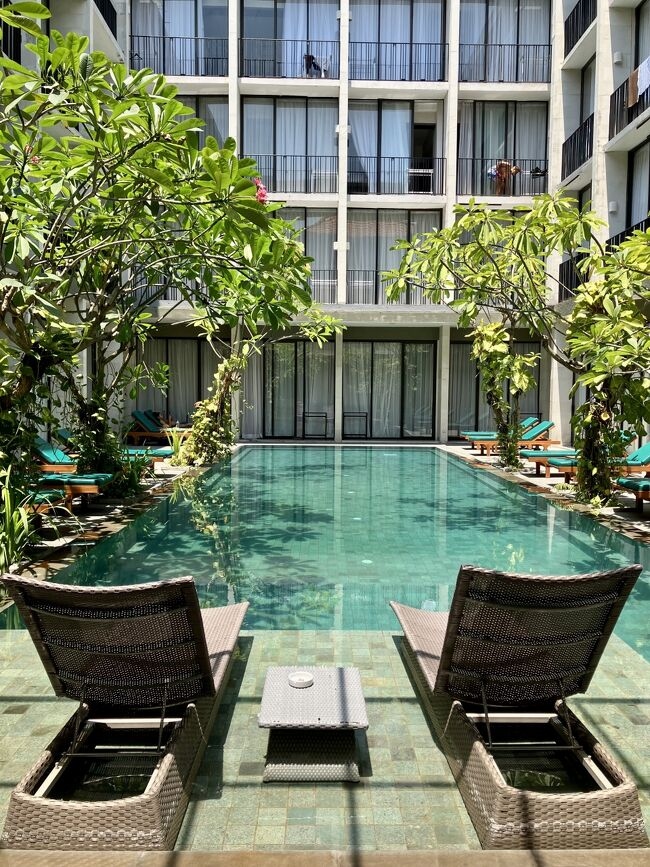 中庭にプールがあり、写真映えするホテル。実際は割としょぼめだけど、プールアクセスの部屋にしてみた。