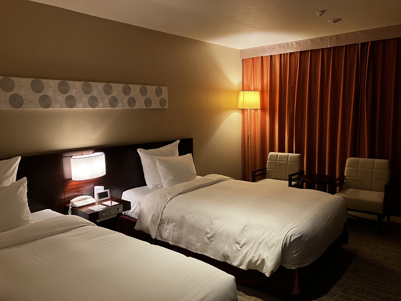 客室はゆったりしたビジネスホテルという感じで、宿泊した部屋は眺望もありませんでしたが、全体的に品があり、朝食のバイキングの接客も素晴らしいです。ANAスーパーフライヤーズ限定プランで予約をしたら、朝食無料。更に奥の静かな席に通して頂けて感動しました。おかげさまでゆっくり食事ができました。