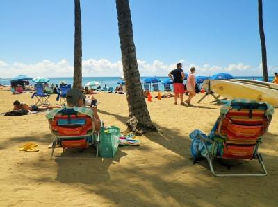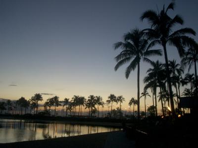 ワイキキビーチをずーっとお散歩。ヒルトンの前のラグーン。きれいですねー...