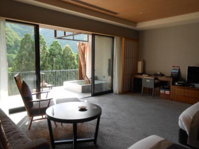 お風呂のふちに立つと、向かいの南館から丸見えです。絶景なのに、シャワ...