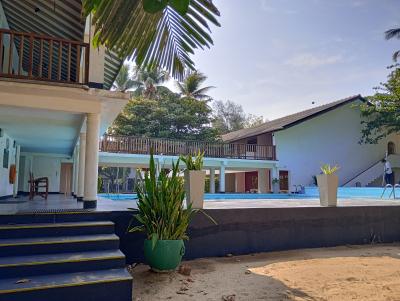 スリランカ航空がトランジットホテルとして用意してくださったので利用しました。アメニティは石鹸1個、バスタオルとフェイスタオルが1枚ずつでドライヤーはなかったです。シャワーの水量は最低限で、朝はぬるい水がでてきましたが夜はお湯がでました。プールを過ぎるとビーチがすぐそこで、カップルが散歩していたり犬が遊んでいたりとても平和的ですてきな雰囲気でした。飛行機の出発が遅延しましたがそれに合わせてチェックアウトの時間も延長してくれました。設備が古いなと感じるところもありましたが、送迎とお部屋と食事を無料で提供していただいているのですから文句は言えません。