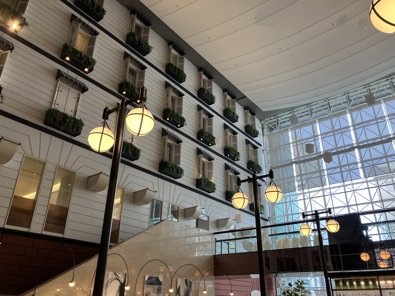 吉祥寺駅を出て五日市街道の方に歩いていくと10分ほどで到着します。2階にレセプションがあり、ホテルの建物を入ると建物の中にヨーロッパの街並みのような出窓のある風景が広がっています。まるでディズニーランドにでも来たかのような気分になり、テンションが上がりました。もうひとつユニークなのが、建物の地下にボウリング場があることです。