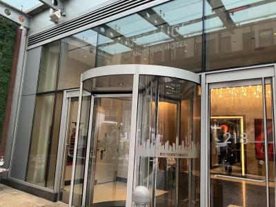 マンハッタンの中心的なエリアであるミッドタウン・ウエスト地区にあるホテルです。建物の入口にあるホテルの名前がオシャレに配置されていて洗練された印象です。マリオット系のラグジュアリーホテルということで、一見するとホテルというよりも高級なアパートメントのようでした。老舗百貨店のメイシーズがすぐ隣くらいの位置にあり、訪れた時は、ちょうど母の日のデコレーションがなされていました。