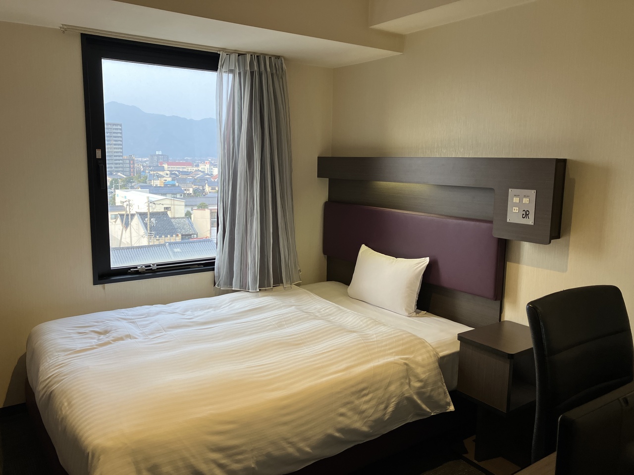 島根県への一泊二日旅で利用しました。出雲市駅から歩いて10分弱くらいの場所にあります。二股炭酸カルシウム温泉の大浴場があり、小さいながらも外の空気が感じられる屋外のお風呂もあります。朝の時間にも大浴場を利用しましたが、なぜか夜についていたジェットバスの泡がなくなっていました。ホテルの前の通りを挟んで向かい側にファミリーマートがあるので、水などを買うこともできます。