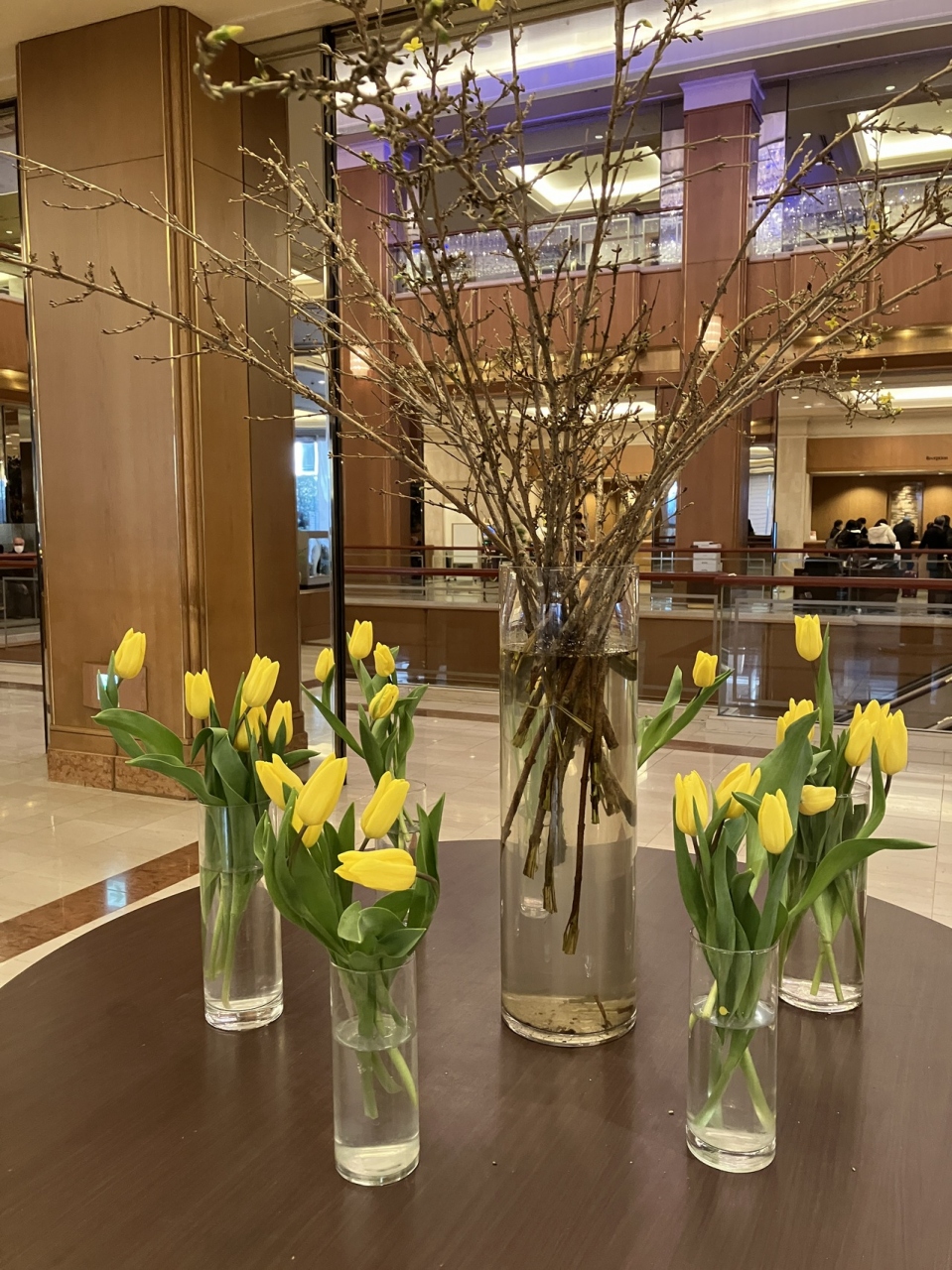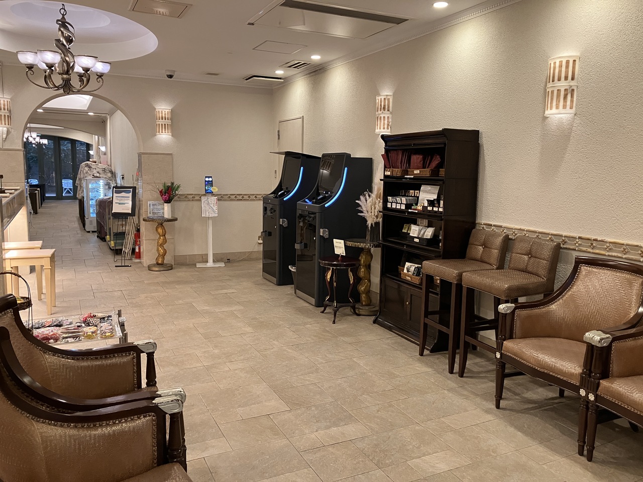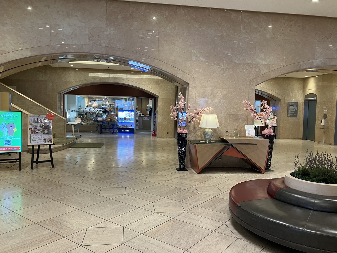 1階にはベーカリーのお店があり、ケーキやパンの他にシチューなどの洋食がパックに入って販売されているのでテイクアウト用にも便利でした。ロビーはシャンデリアなどもあって洋風です。日本橋という都心の立地ながら、茶室を備えた日本庭園もあります。地下には洋服屋さんやフラワーショップ、ヘアサロンがあるショッピングアーケードもあり、さながらホテルが街のようです。