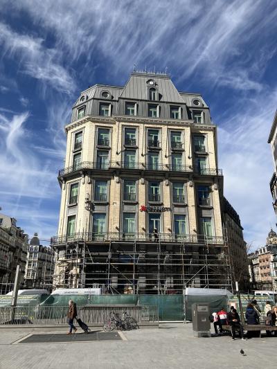 ベルギーのブリュッセルを旅行した際に訪れました。ブリュッセル証券取引所の目の前にある広場に面したマリオットのホテルです。訪れた時には外装を工事中で足場が組まれていました。ブリュッセルの街中は道が石畳になっているのでスーツケースをひいて歩くのには適していません。ブリュッセル証券取引所までは地下鉄でも来れますが。タクシーを利用するのが良いです。