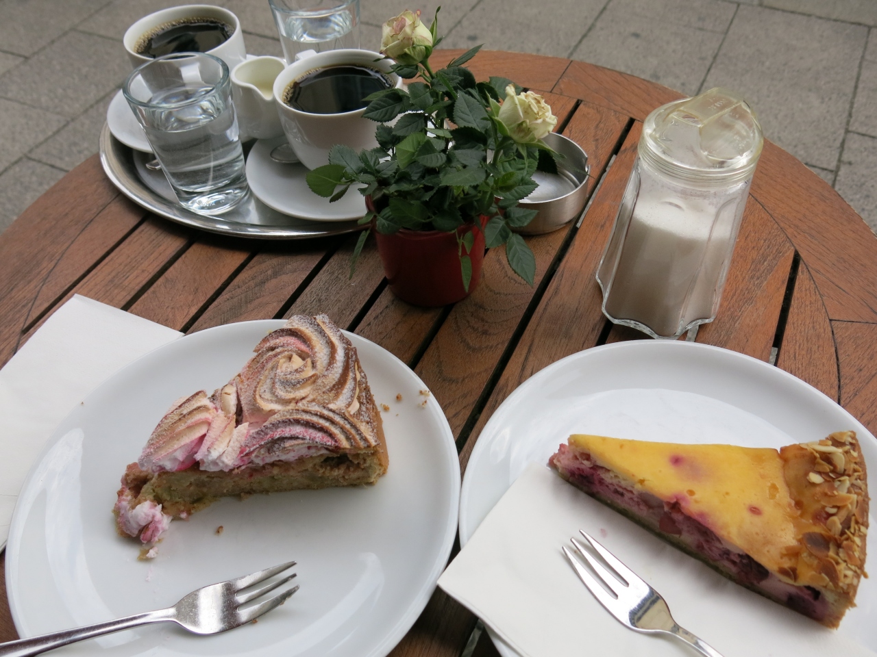 ミュンヘン旅行でやってみたかったことの一つがカフェで美味しいケーキを食べることだったので、ガイドブックにも載っていたこちらのカフェを訪れました。近くにミュンヘン大学があり、地元の学生さんらしきお客さんもいました。フルーツが入ったチーズケーキが濃厚で美味しかったです。テラス席があるのでゆったりと爽やかな外の空気の中でティータイムが楽しめました。