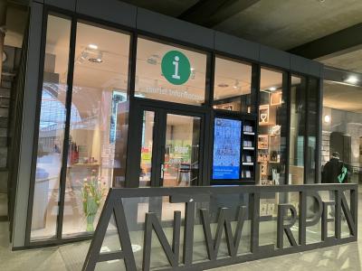 ブリュッセル中央駅から約45分でアントワープ中央駅に到着。観光の前に、駅構内にある観光案内所に立ち寄りました。スタッフの方が2名いて、とても分かりやすい英語で効率のよい回り方や、少し足を伸ばした観光スポットなどを丁寧に教えてくれました。観光案内所で売っているアントワープの絵柄が入ったトートバックも可愛かったです。