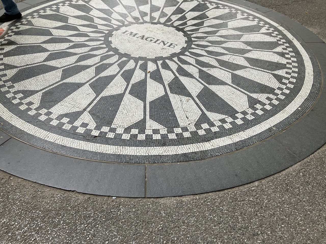 セントラルパークの72st駅から一番近い入口から入ったところにストロベリー・フィールズがあります。ジョン・レノンがかつて住んでいたダコタ・アパートの前の広場にある記念碑です。写真を撮る人たちが列を作って待っていました。近くでは、ジョン・レノンの曲を弾き語りしている人もいて良い雰囲気でした。