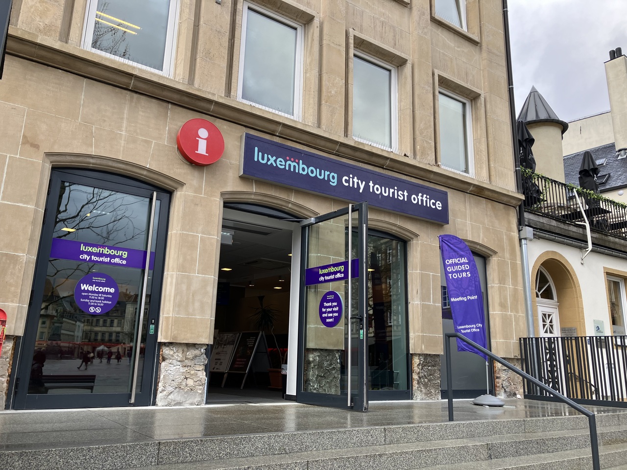 初めてルクセンブルクを訪れたので観光案内所で基本的な情報を入手したいと思って立ち寄りました。ルクセンブルクの旧市街にあるギョーム広場内の観光案内所です。窓口には2名のスタッフがいらっしゃって、とてもフレンドリーでいろいろ親切に教えてくれました。観光案内所でもらったシティマップには、フォトスポットも記されているのでルクセンブルクで思い出に残る写真を撮ることができました。