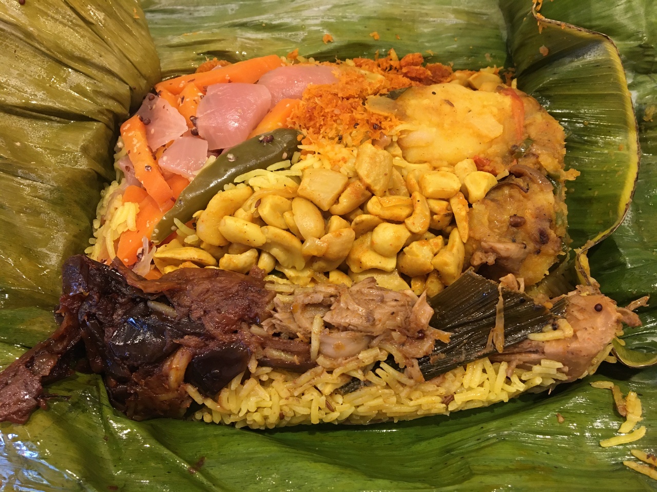 葉っぱをめくると、いろいろな具とイエローライスが出てきました。チキンみたいな見た目のものがあったのでビックリして聞いたら、ジャックフルーツという野菜でした。よく混ぜて食べ進めていく楽しさがあり、食べていくうちにじわじわと身体の内側から温かくなって汗が出てきました。- 旅行時期