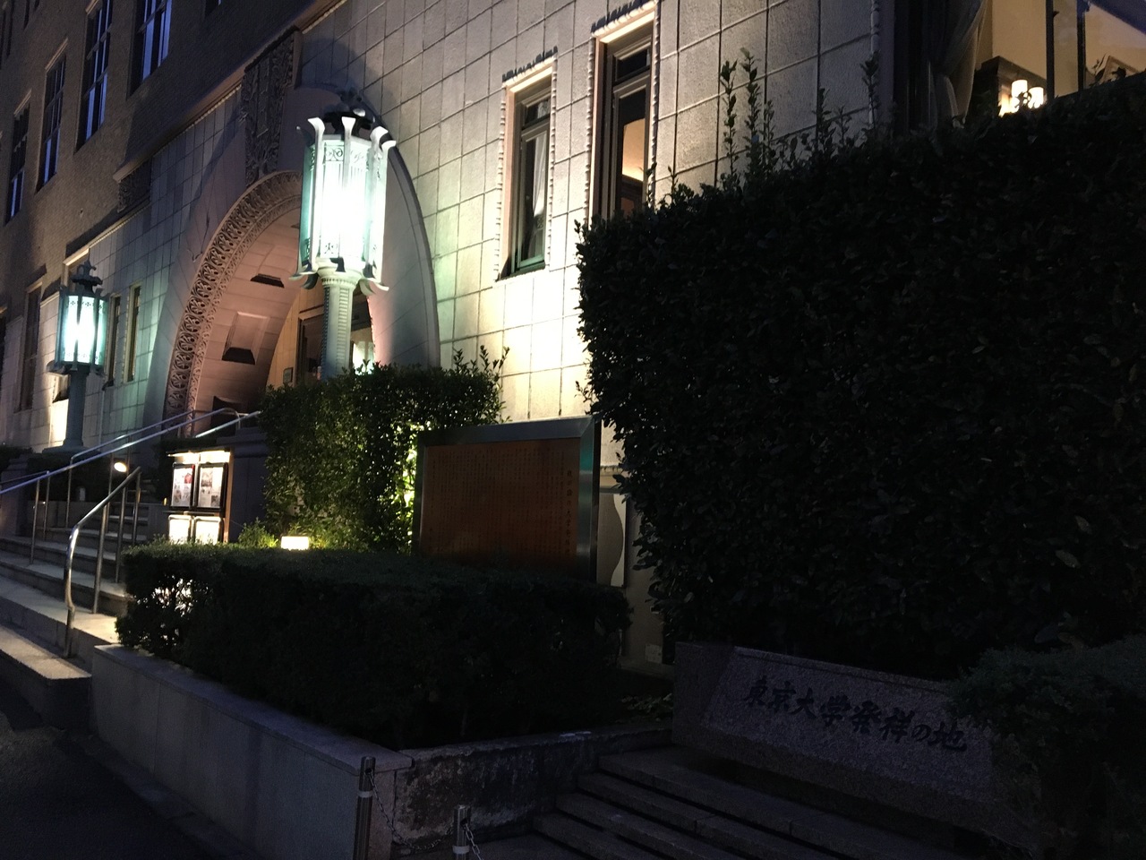 皇居散歩を楽しんだ後、喫茶店でコーヒーとケーキで一休みしようと思い、神保町エリアに向かいました。一ツ橋を渡った先に、重厚な建物が見えてきて、とても素敵だったので近づいてみると学士会館でした。その学士会館の前に、「東京大学発祥の地」という石碑が建っています。東京大学というと本郷三丁目にあるというイメージが強いので、神保町に発祥の碑を見つけて意外に思いました。