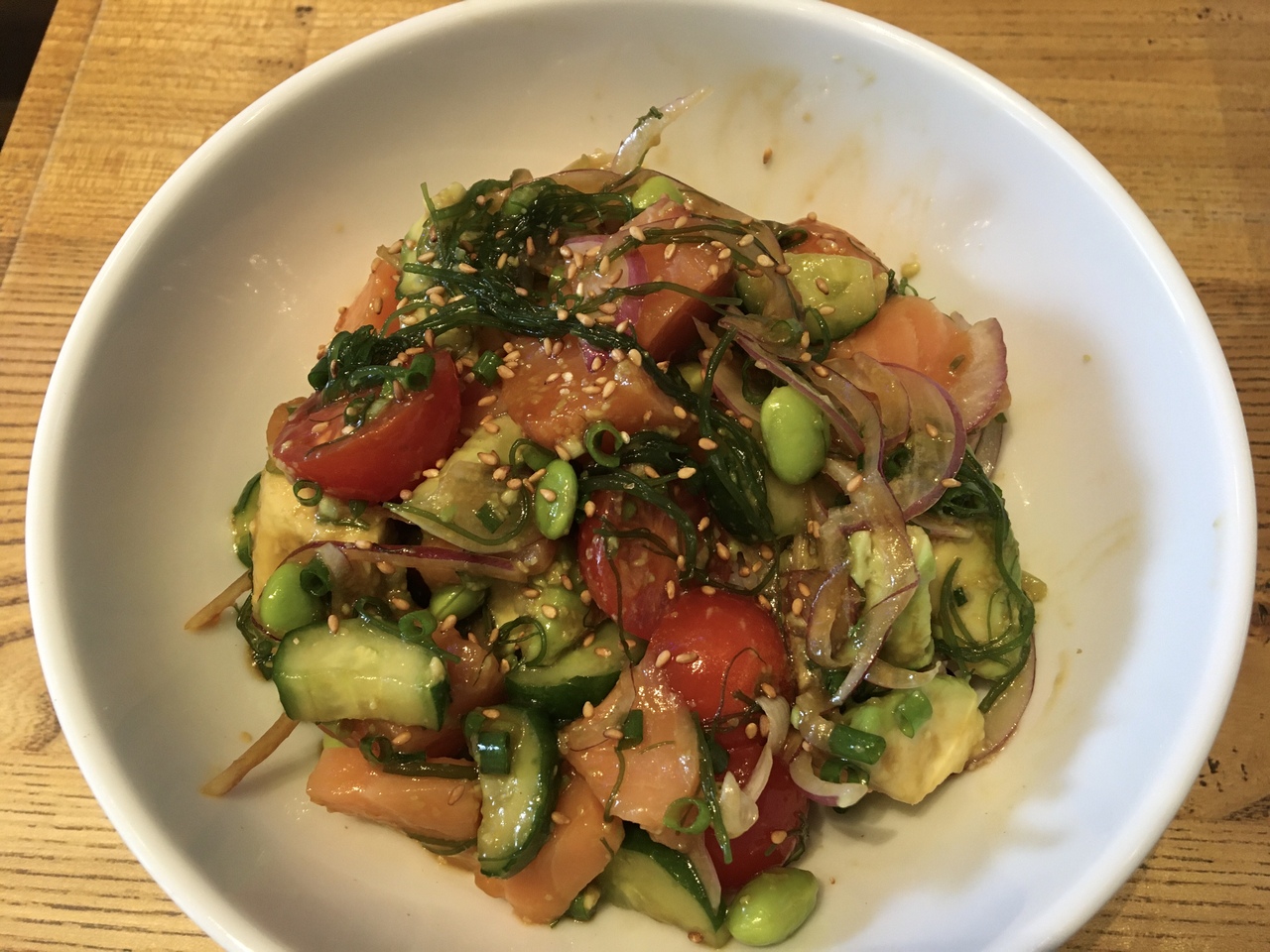 ポケ丼という名前の海鮮丼をいただきました。具材やトッピングを選べて野菜もたっぷりでヘルシーでした。- 旅行時期
