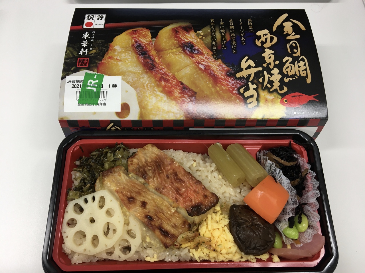 JR東京駅構内で駅弁を販売しているお店です。祭という店名に相応しく、賑やかな雰囲気があり、ズラッと揃った駅弁を選ぶのはワクワクします。平日の朝9時に来店したところ、お客さんがひっきりなしに来店していました。金目鯛西京焼弁当を購入しました。肉厚な金目鯛が2切れ乗っていて、付け合わせの野菜も程よい味付けでした。