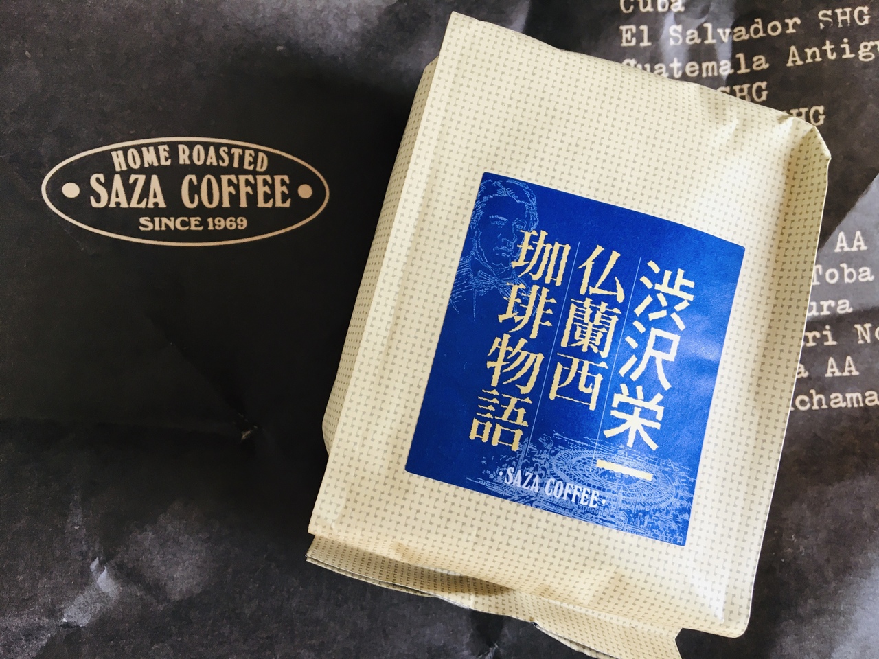 品川駅構内のエキュートにあるサザコーヒーのお店です。カウンターに席もあって、電車や新幹線を待つ間にコーヒーが楽しめます。家用のコーヒー豆がほしくて来店しました。そんなに酸味が強くないコーヒーがいいと希望を伝えたところ、店員さんが渋沢栄一の名前のついた豆(1500円)を薦めてくれました。