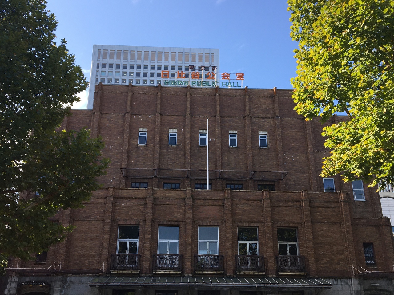 有楽町エリアの日比谷公園内にある多目的ホールです。現在は老朽化のため、長期休館中で中に入ることはできませんでしたが、外からレンガ作りの建物を眺めるのも壮観でした。すぐ目の前には第二花壇があり、大きなソーラー時計もあります。