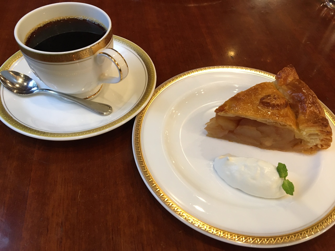 アンティークブランドコーヒーとケーキのセットを注文。ケーキは4種ありましたが、既にチョコレートケーキとチーズケーキは売り切れで、アップルパイとサバランの2択でした。悩みつつ、アップルパイを選択。林檎がたっぷり詰まったパイでした。- 旅行時期