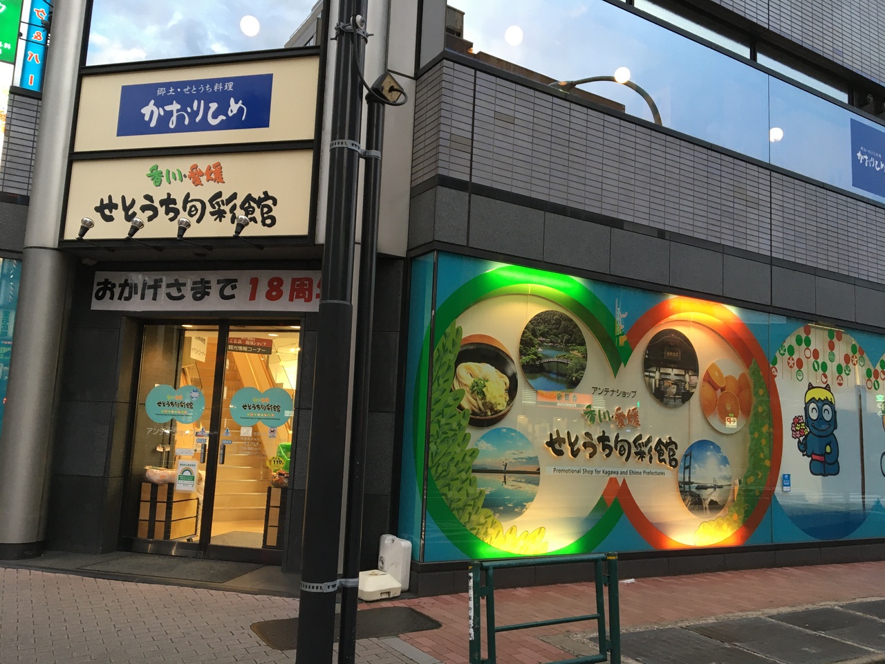 新橋にある愛媛県と香川県のアンテナショップ。一階が特産品のショップ、二階が郷土料理のレストランです。