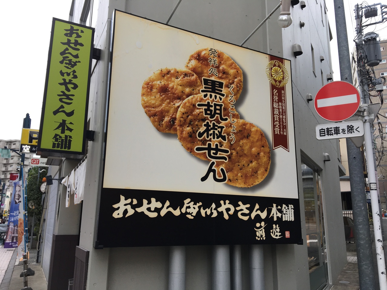 埼玉県深谷市に本店があるというお煎餅屋さん。戸越銀座商店街の武蔵小山寄りの方にお店があります。お煎餅の大きな写真があるので、すぐにお店が分かります。バラエティに富んだお煎餅が売っていますが、ご家庭用黒胡椒せん150g(290円)が気になり購入。家庭用なので、割れているものもあるそうですが、問題なしです。黒胡椒の風味がバシっと効いていました。一つ一つのお煎餅が小ぶりで薄いので、食べ始めたら美味しくて止まらないです。