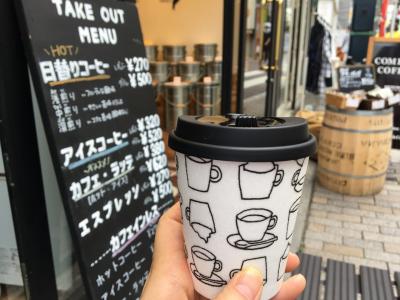 日替りコーヒー(270円)は、浅煎り、中煎り、深煎りの3種類から選べます。優しい苦味という中煎りをチョイス。苦すぎず、飲みやすいコーヒーでした。お店の外にベンチがあるので、商店街を歩く人たちを見ながらのんびりコーヒーが飲めました。