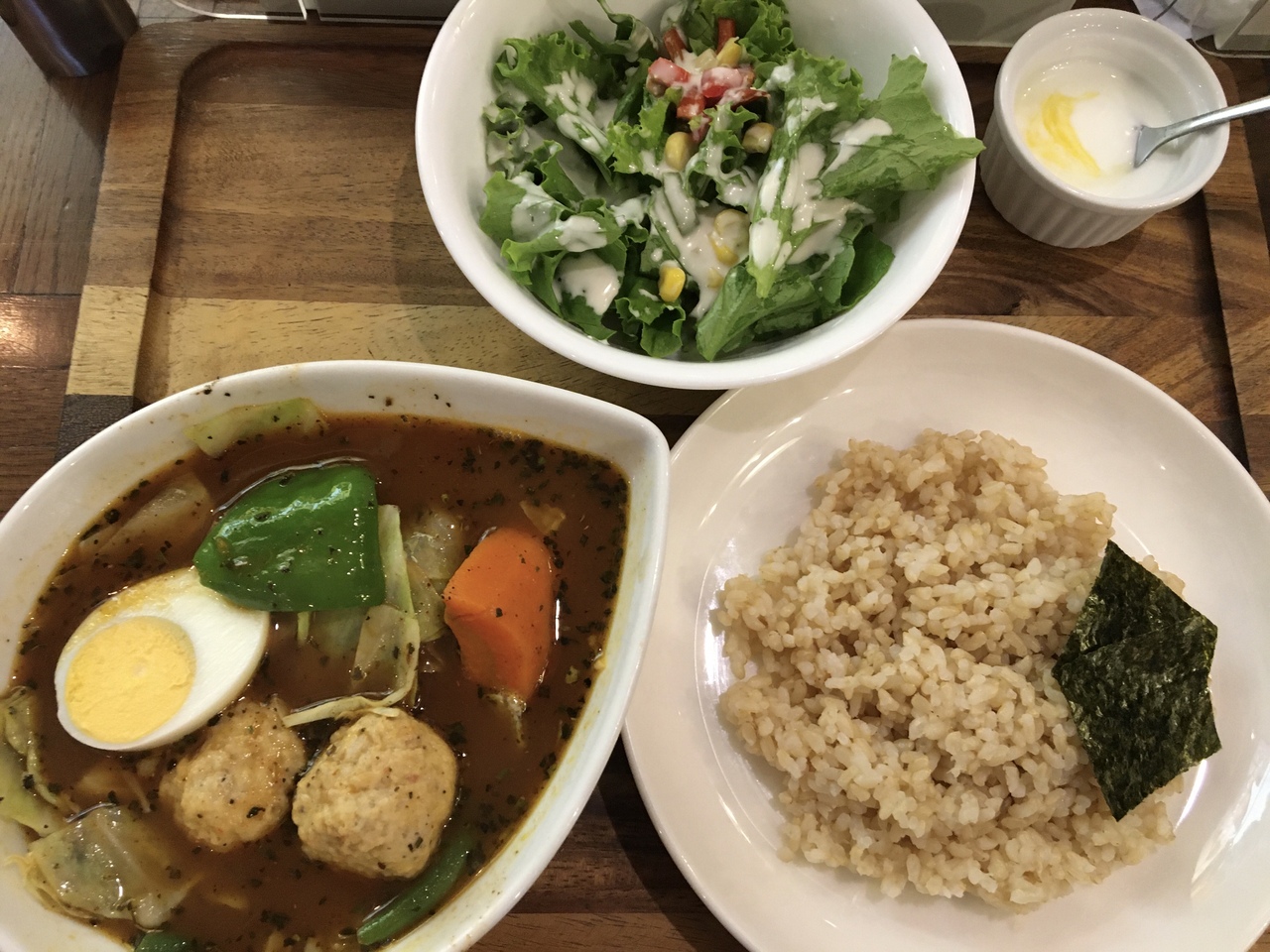 ご飯は白米か玄米を選べ、量やカレーの辛さを調整できました。野菜がたっぷり摂れて、スパイスも効いていて身体に嬉しいカレーでした。- 旅行時期