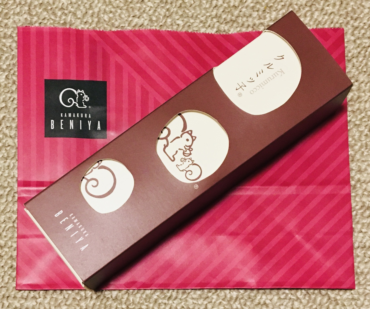 東京駅に隣接する大丸東京店の一階に店舗があります。以前、鎌倉に行った時に紅谷のクルミっ子を買ってすごく美味しく、リスの描かれたパッケージも可愛いので友人からも好評だったのを思い出し、今回は手土産として大丸で8個入り(1166円)を購入しました。ちょうど七夕が近かったので、笹とリスが描かれた短冊も付けてくれました。