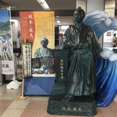 コンパクトなサイズの空港ですが、お土産屋さんや土佐料理が楽しめるレストランなど、必要な設備は整っています。到着すると、坂本龍馬の像が迎えてくれます。空港からはバスが出ていて、各航空の到着に合わせて出発します。高知駅やはりまや橋までは約35分。市内が近くて便利です。