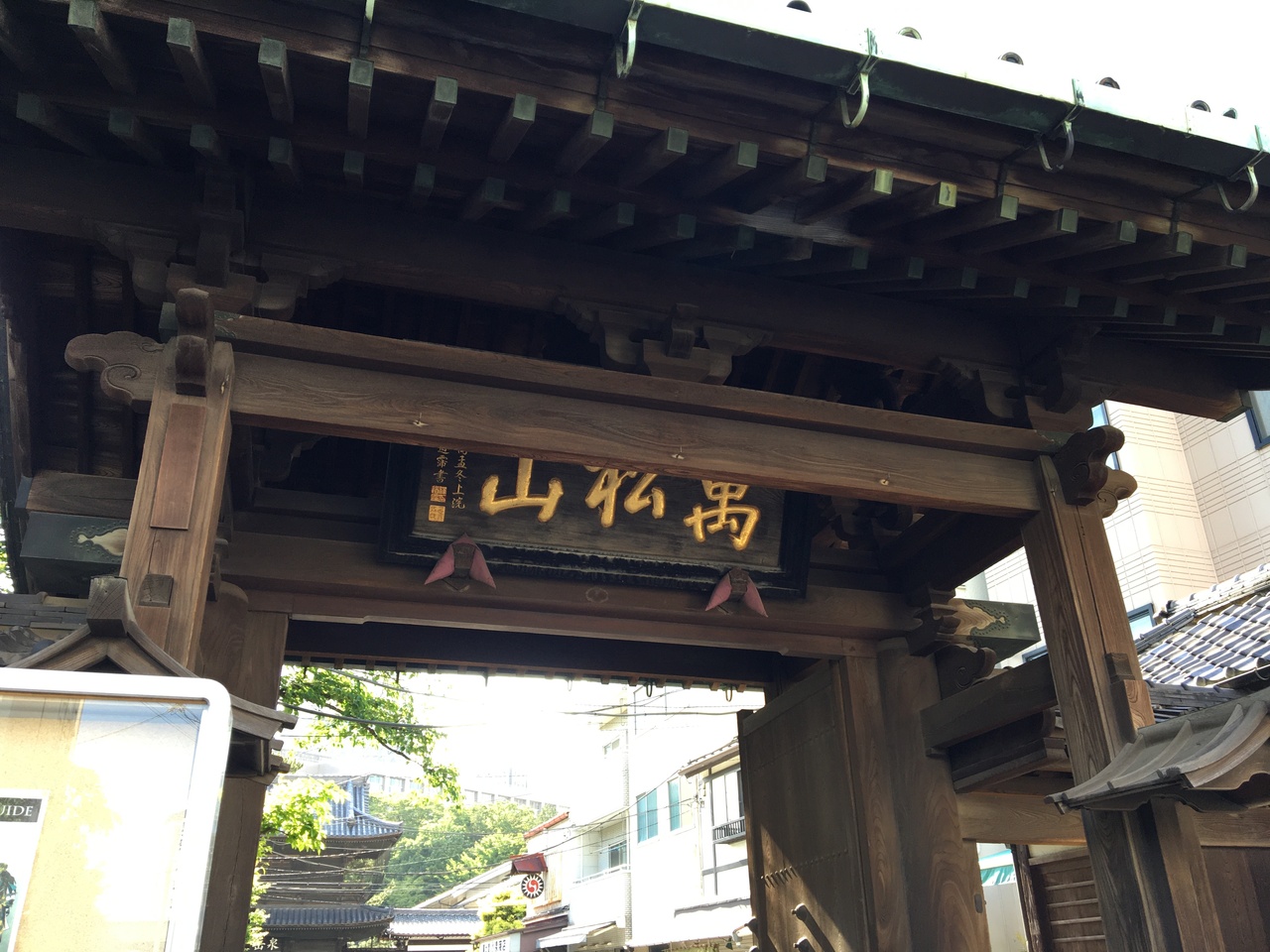 日暮里駅西口を出て、谷中銀座商店街に向かって歩いていく途中にあるお寺です。本堂の隣にある大黒堂には、大黒天様が祀られていて、この大黒天様は日蓮上人の作と伝えられているそうです。山門には昔の銃弾跡が今も残っています。